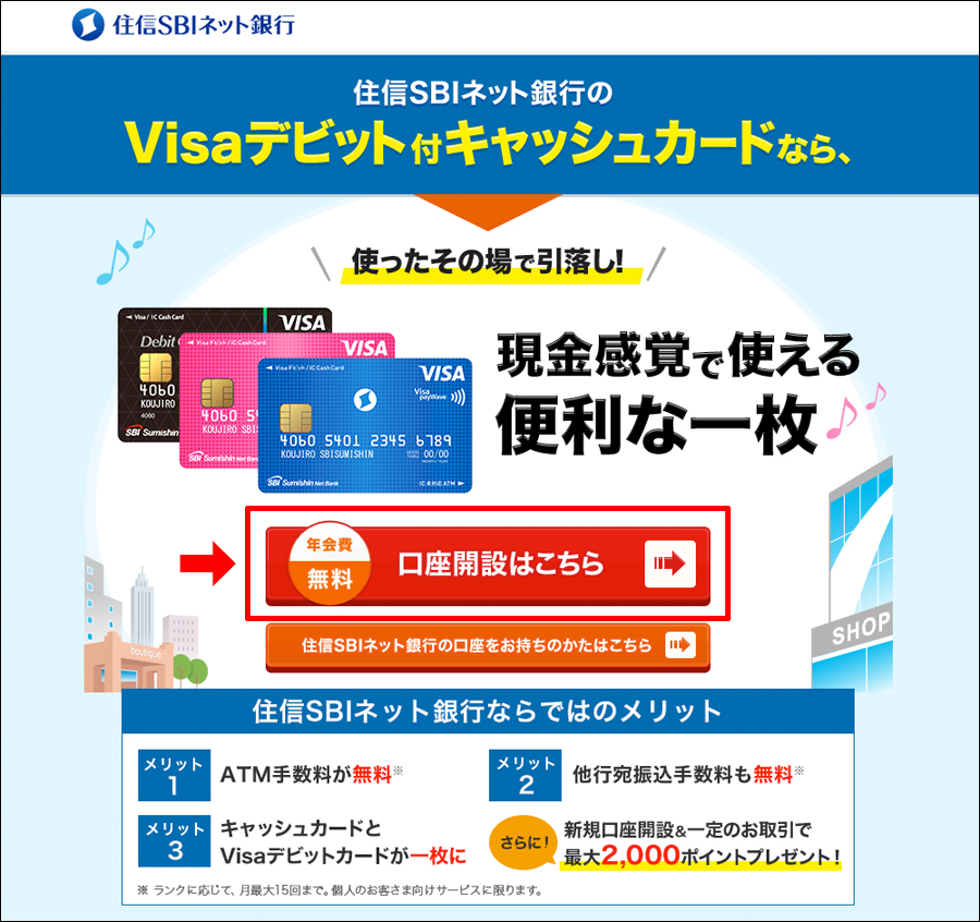 住信SBIネット銀行の口座開設トップページが表示されます!
