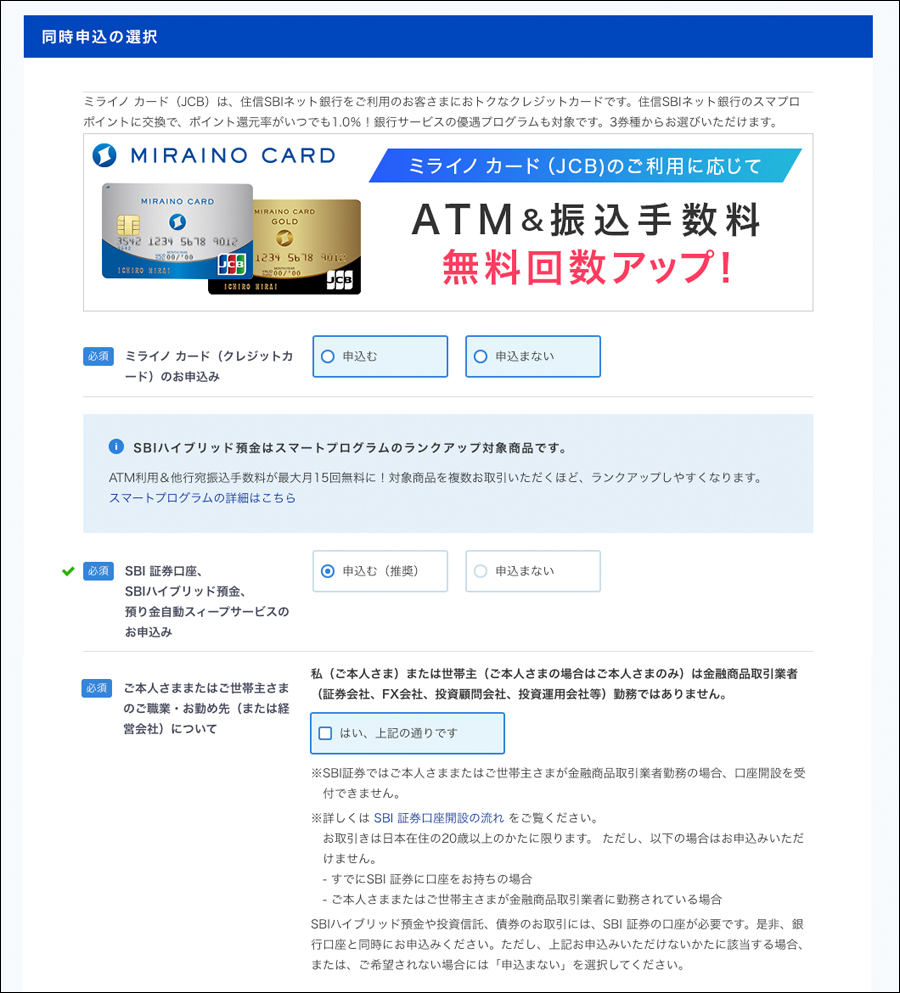 同時申し込み欄があるので必要であればクレジットカードやSBI証券口座の申し込みも可能です!