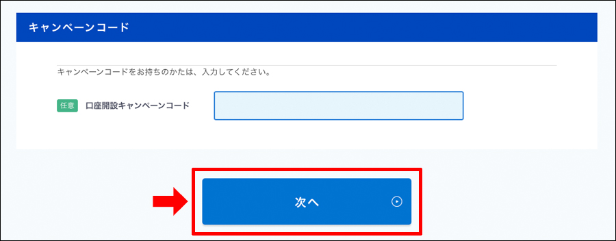 キャンペーンコードはないので空欄で必要事項を全て正確に記入できたら「次へ」をクリック!