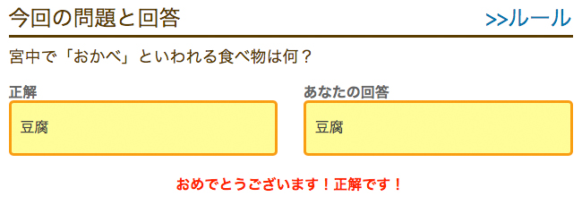 宮中で「おかべ」といわれる食べ物は何? / ポイントタウン ポイントQ 答え合わせ