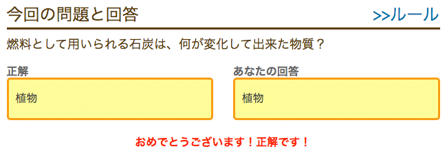 燃料として用いられる石炭は、何が変化して出来た物質? / ポイントタウン ポイントQ 答え合わせ