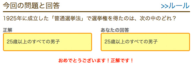 1925年に成立した「普通選挙法」で選挙権を得たのは、次の中のどれ? / ポイントタウン ポイントQ 答え合わせ