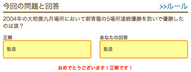 2004年の大相撲九月場所において朝青龍の5場所連続優勝を防いで優勝したのは誰? / ポイントタウン ポイントQ 答え合わせ