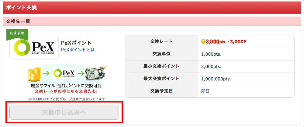 ECナビポイント3000pts ⇒ PeXポイント3000p