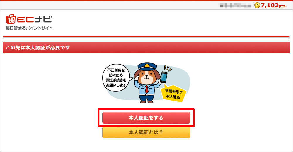 先に進むと本人認証画面が表示されます、本人認証をしないと交換出来ないので