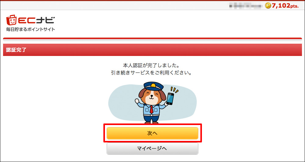まずはECナビポイントを確認!7000pts(7000ポイント)ありますね♪